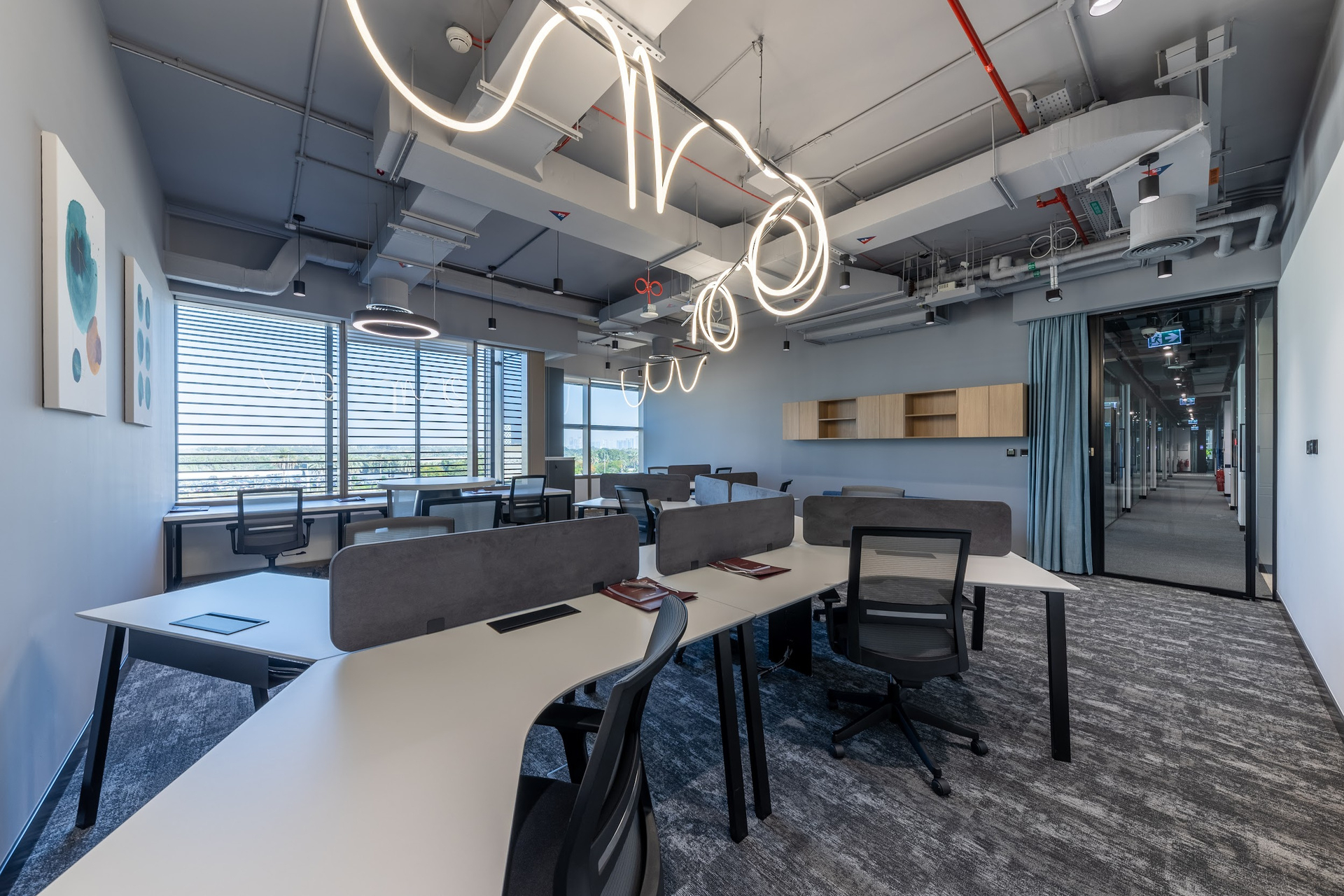 The stylish interiors feature modern furnishings, high ceilings, and abundant natural light, creating an inspiring environment that fuels productivity and fosters innovation.